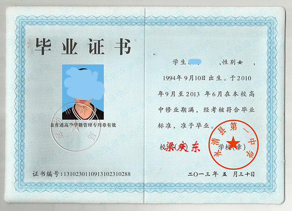 高中畢業證補辦網提供黑河市普通高中畢業證樣本、圖片、模板、樣式、學籍號、編號、鋼印、復印件、英文翻譯件、高中畢業證丟失補辦等業務!黑河市高中畢業證樣本支持在